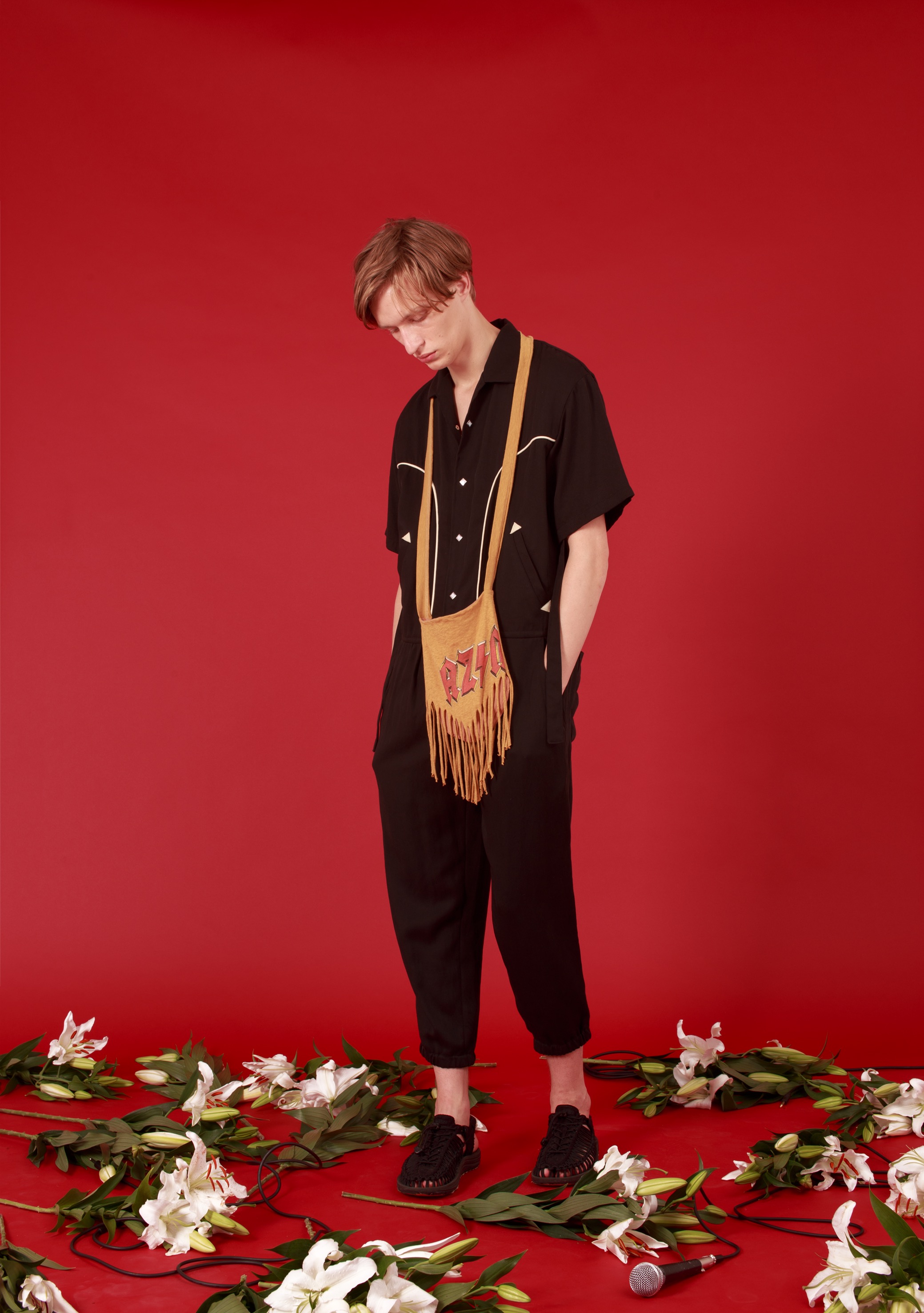 デザイナー私物のヴィンテージTシャツをリメイクしたポーチがベース。