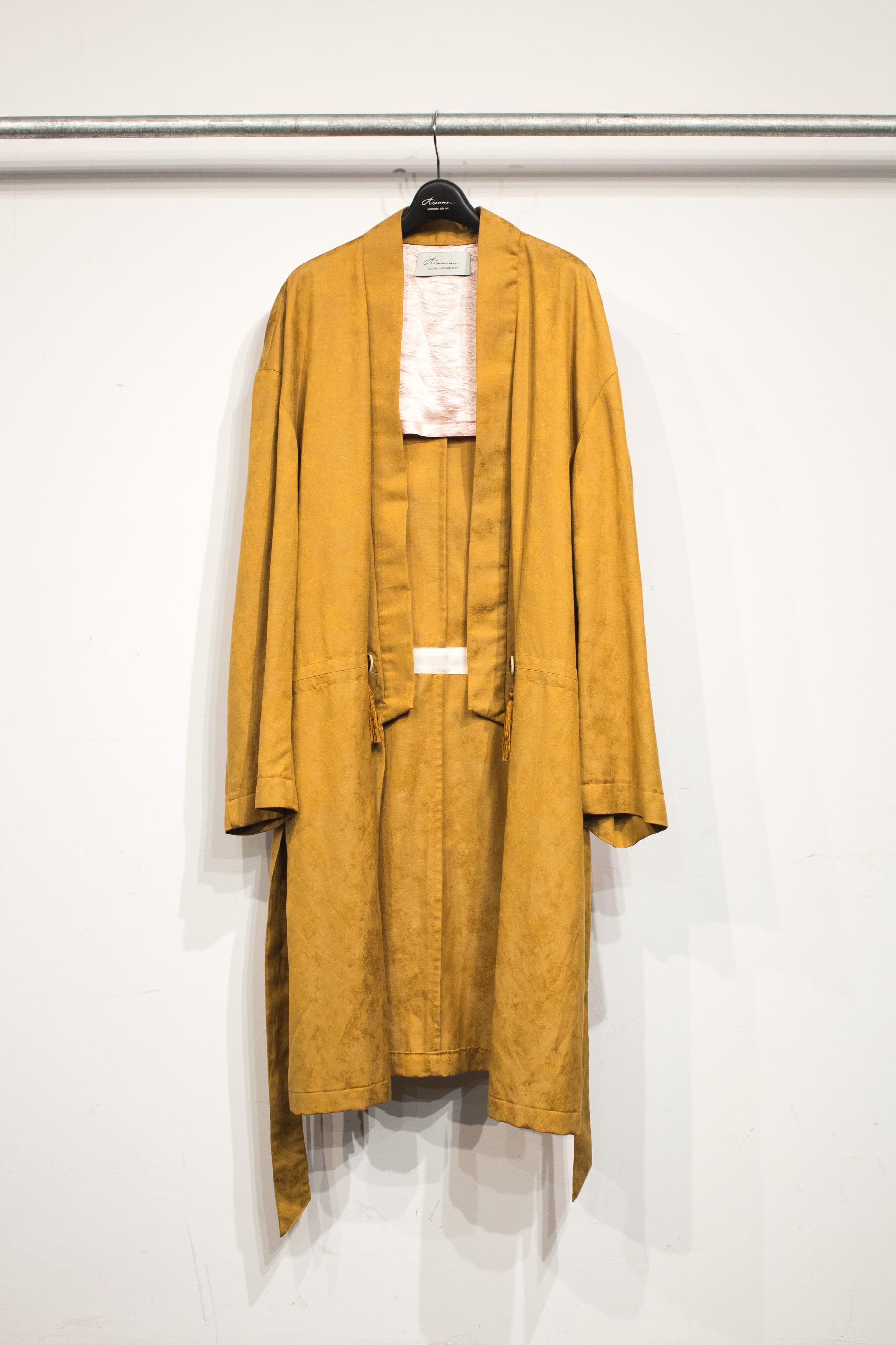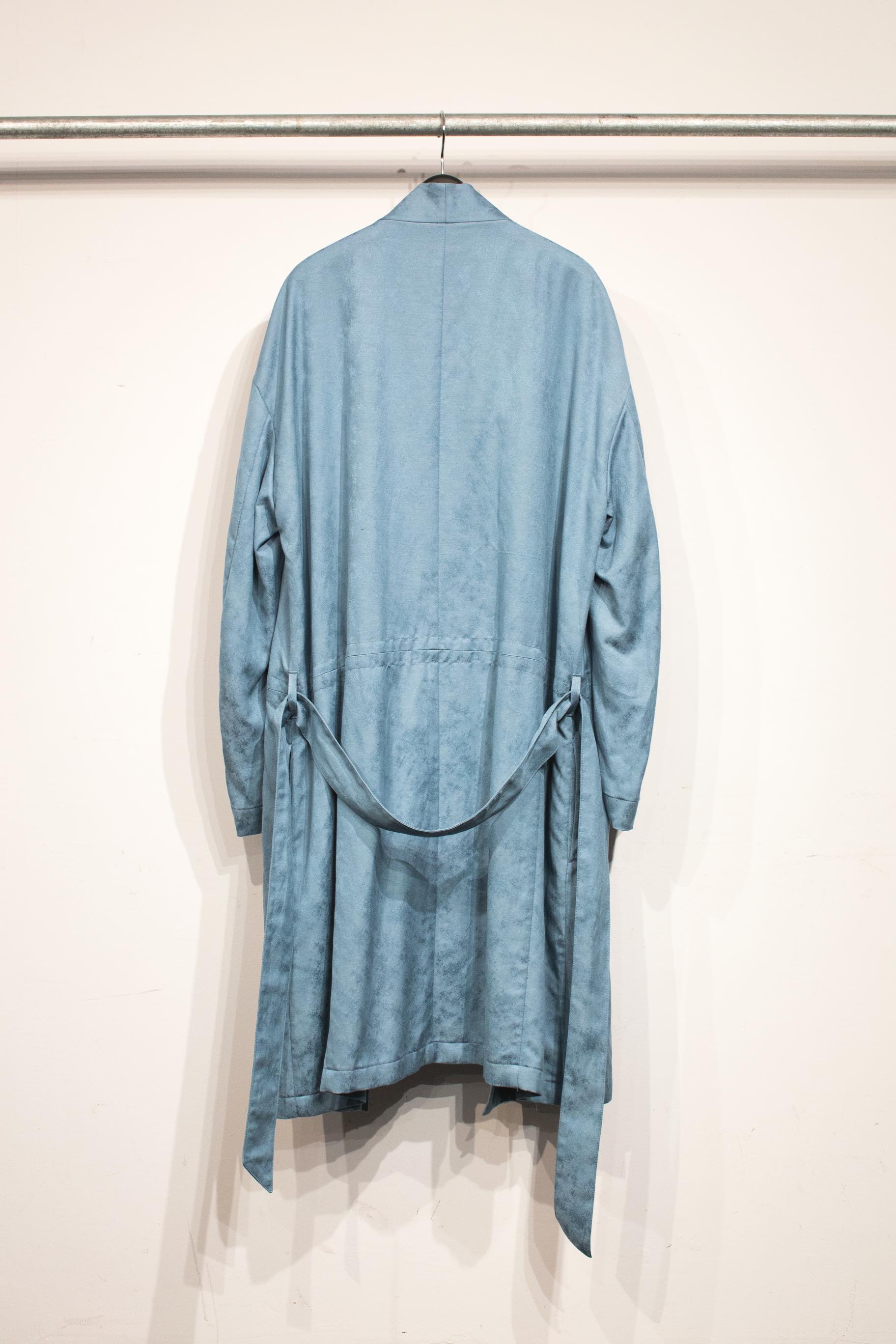 ドロップしたショルダーにゆったりしたシルエットが着物を連想させる。